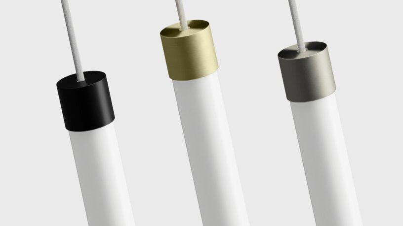 Unlike most tubular lights, Lyro links magnetically end to end with no shadowing or visible breaks. It’s available in 30mm, 40mm, and 60mm diameters, and comes in standard lengths of 0.5m, 1m, and 1.5m. The luminaire ships with flush, colour-matched end caps, and can be customised with decorative metal caps in black, brushed brass, or nickel.